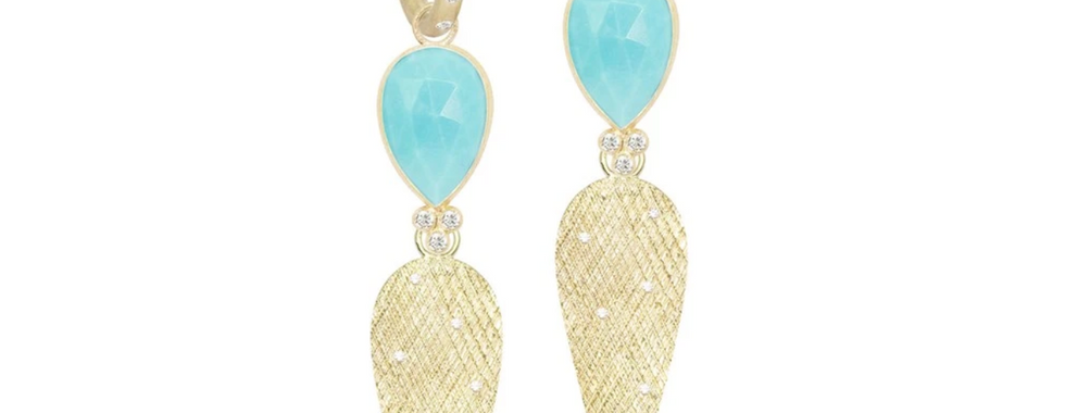 Brent Neale Clover & Double Heart Drop Earrings with Reconstituted Turquoise, Blue Topaz, Moonstone, and Diamonds ($4,350)