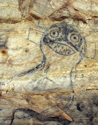 Since the research began in 1990, several selfless individuals, institutional grants, foundational funding, Osage members, and the landowners have made it possible to link documented facts with artistic interpretation. For archeologists, Picture Cave represents a vast spiritual convention in the recesses of the Earth that early regional civilizations used for sacred rituals, rites of passage, vision quests, and burials. Scholarly research dates the images to approximately 900-1100 CE. They are extensively documented in the 20-chapter fully-illustrated book, Picture Cave: Unraveling the Mysteries of the Mississippian Cosmos, published in 2015 by the University of Texas Press. Several field experts, archeologists, Native American tribe members, and artists comprise the Picture Cave Interdisciplinary Project to accomplish this wonderful resource guide to understanding Picture Cave and its preservation. These experts include such renowned names as Patty Jo Watson, Distinguished Professor Emeritus of Anthropology at Washington University in St. Louis, and Dr. Jan Simek from the University of Tennessee. As part of ongoing research in Picture Cave, Dr. Simek has compiled and compared geochemical analyses of prehistoric pigment, employed AMS radiocarbon dating and spatial order of iconography. The findings have been published several times in American Antiquity, the professional journal published by Cambridge University Press for the Society for American Archaeology.